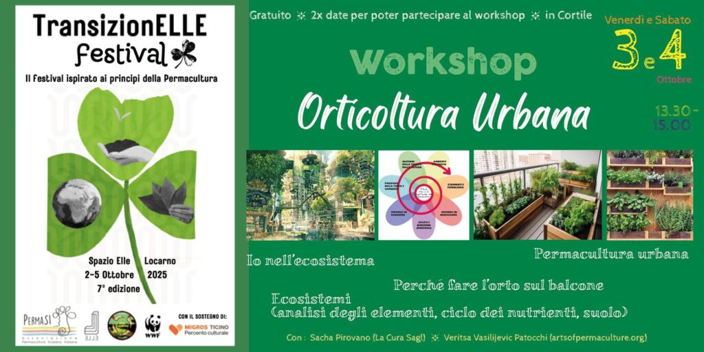 Dal 2 al 5 ottobre 2025 SpazioElle a Locarno ospiterà il prossimo festival ispirato ai principi della Permacultura e transizione, che festeggia i suoi 10 anni di esistenza! Fu proprio nel 2015 che il movimento di Permacultura prese piede in Ticino, e da quel momento tanto è successo e cambiato.